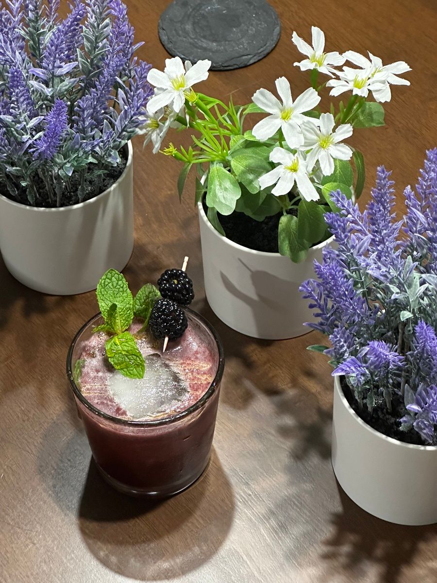 I was sitting at home this past weekend with my cats and had an absolute craving for some blackberries. I had seen them at the grocery store the week prior and they just looked so good! With the sun shining and birds chirping (I leave birds on my TV for my cats to be entertained by) I ran to the HEB and gathered my supplies. You can see the full recipe down at the bottom of this post, and trust me, you’re going to want to try this one. The nice thing about this drink too is that the blackberries aren’t too sweet of a fruit so you can really control the level of sweetness with the amount of honey you use. For me, 2 tablespoons was perfect. I saved a little bit to drizzle on top and the really elevated the drink for me. You can use a simple syrup in the recipe as well if you’d like, but with summer coming up, getting some local honey is a great way to help with your allergies, help save the bees, and help a local bee keeper. You can find even more benefits of eating local raw honey here https://www.farmersalmanac.com/local-raw-honey-22439.